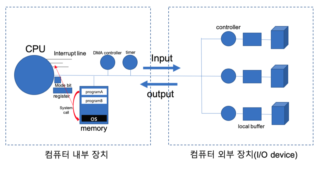 운영체제란? 일반적으로 하드웨어를 관리하고, 응용 프로그램과 하드웨어 사이에서 인터페이스 역할을 하며 시스템의 동작을 제어하는 시스템 소프트웨어로 정의한다. 운영체제는 시스템의 자