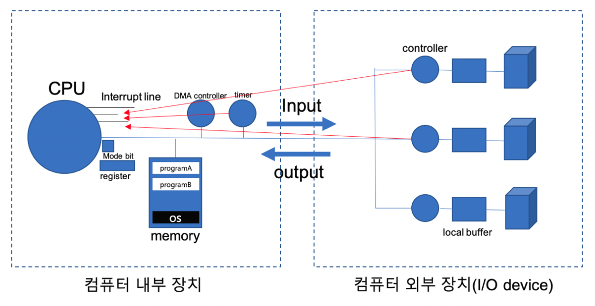 인터럽트는 하드웨어적 흐름의 변화로, 프로그램의 외부(I/O 장치, 디스크 등)에서 발생하며, 발생 시점이 일정하지 않기 때문에 비동기적이다.